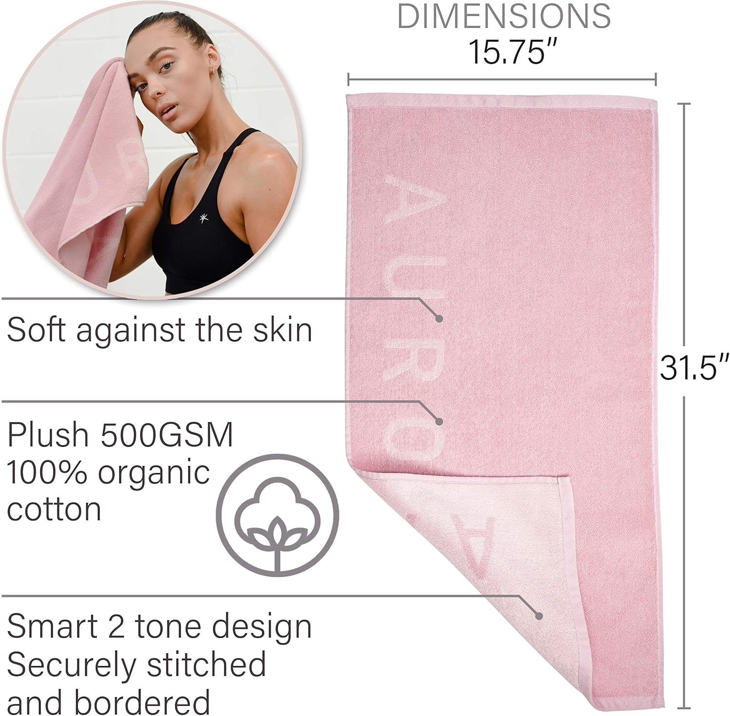 Gym Towel for Sweat – 100% Organic Cotton – Soft and Absorbent Workout Towel for Gym (31.5 X 15.75 inch)- Silver Infused Sports Towel – Yoga and Gym Towel for Women (Pink)