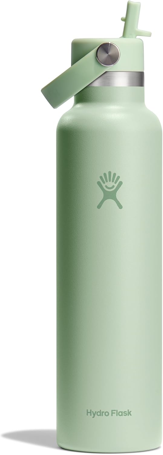 Hydro Flask 24 Oz Stainless Steel Standard Mouth Water Bottle with Flex Straw Cap and Double-Wall Vacuum Insulation