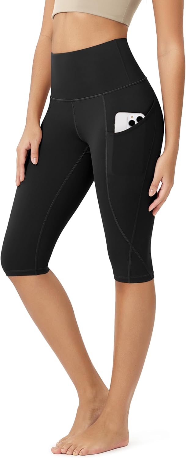 ODODOS Women’s High Waisted Yoga Capris with Pockets, Tummy Control Non See Through Workout Athletic Running Capri Leggings