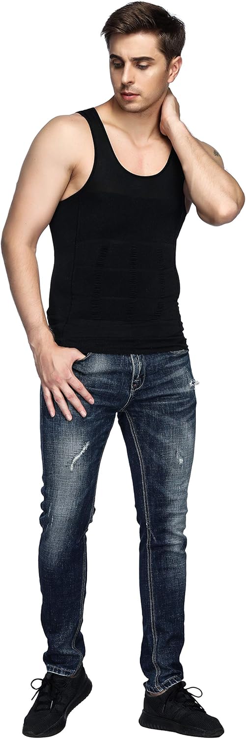 Odoland Mens 5 Pack Body Shaper Slimming Tummy Vest Thermal Compression Shirt Tank Top Shapewear