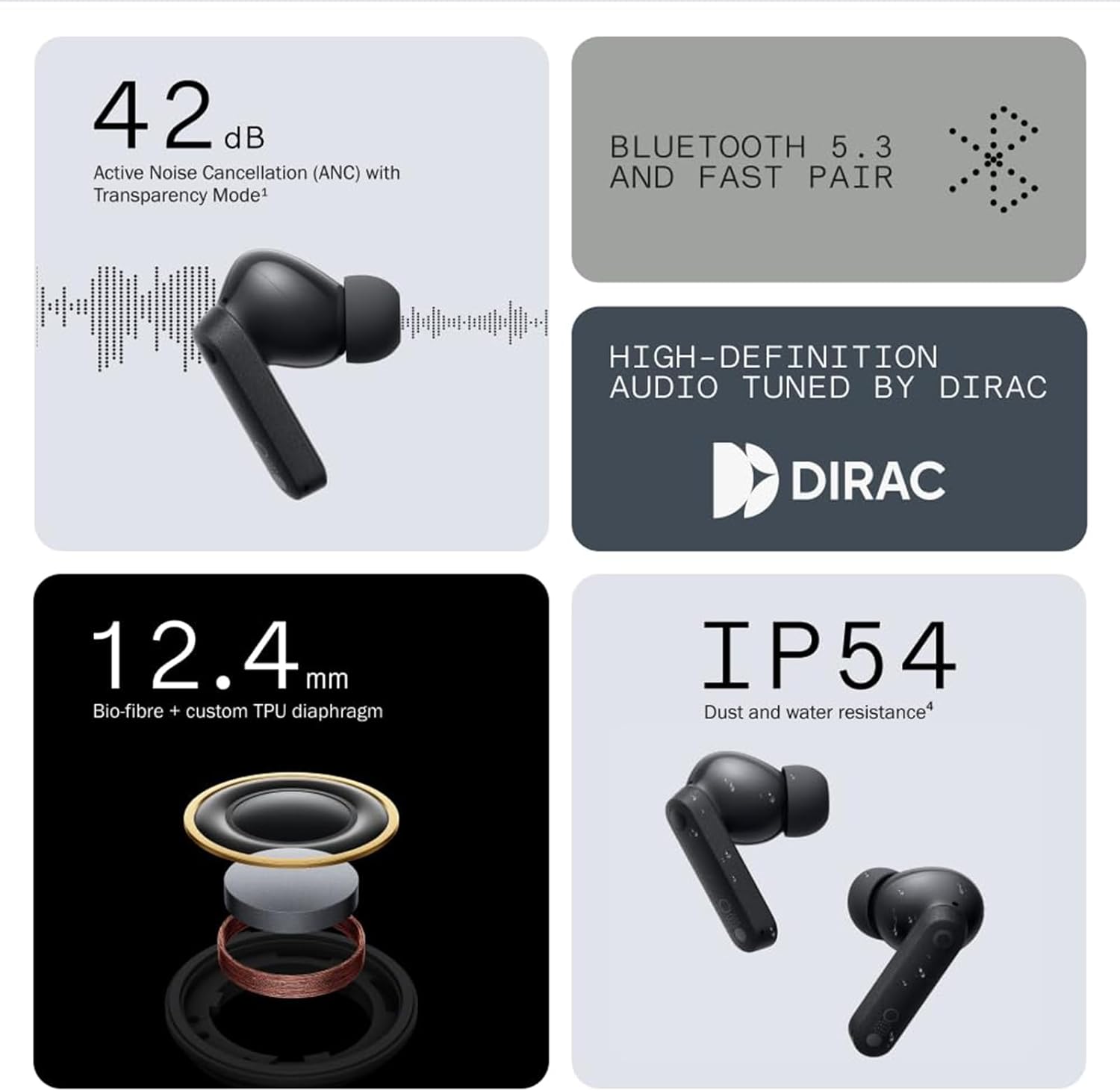 CMF by Nothing In-Ear Wireless Headphones — Bandwidth of up 2900Hz provides 42dB Active Noise Cancelling with Transparency Mode, block out the unwanted noise. The external 4*HD Mics detects ambient noise and Clear Voice Technology for crisp, clear call performance. It’s your preferred sleep earbuds