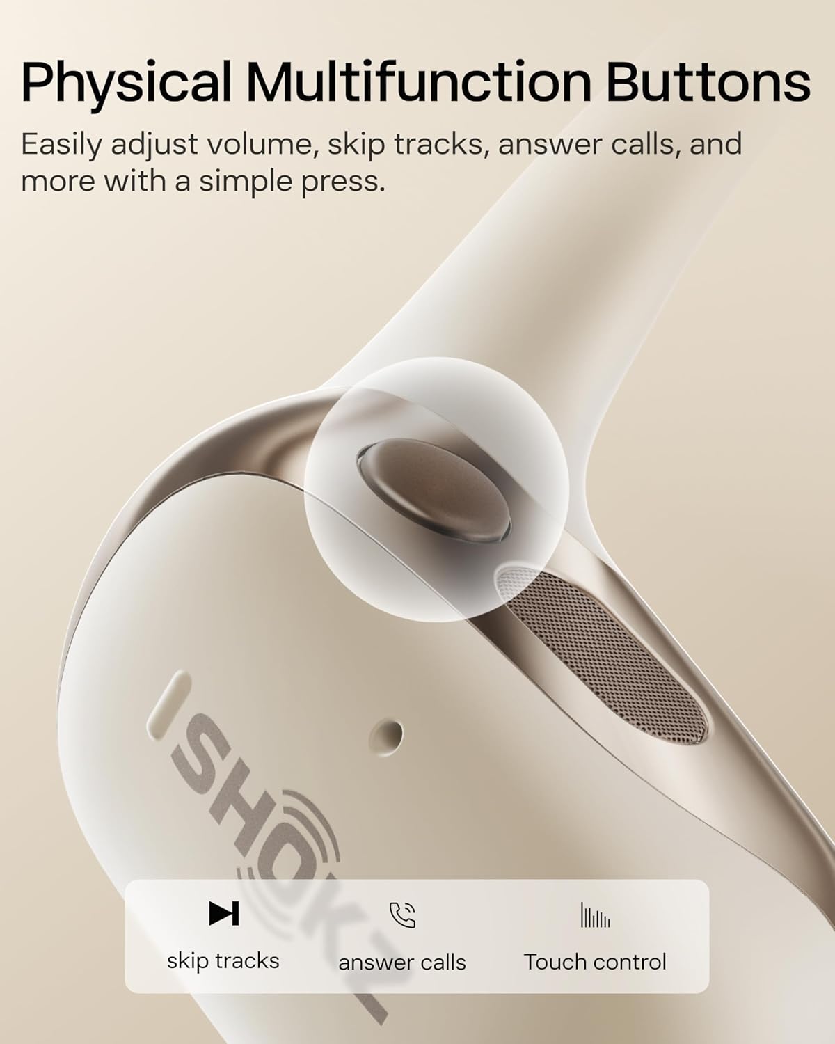Multifunction Buttons – Adjust volume, skip tracks, take calls, and switch between 2 paired devices with a press of the physical buttons. Customize these controls, your EQ modes, and more with the Shokz App