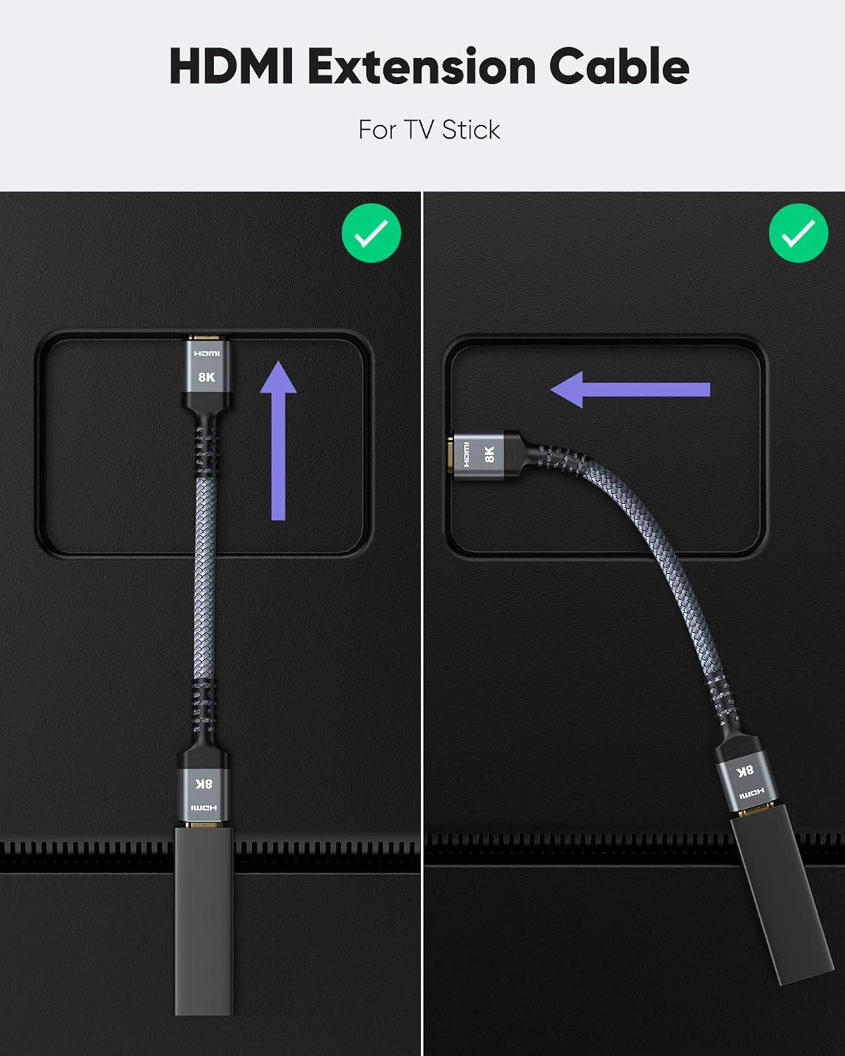 SUPPORTS 8K VIDEO and MORE: This HDMI extender cable supports HDMI Ethernet Channel, 8K@60Hz, 4K@120Hz, 2K, 1080P, 48Gbps bandwidth, 48-bit HDR color depth, and Audio Return Channel (ARC); Full 3D Support without any lag, providing clear and smooth video