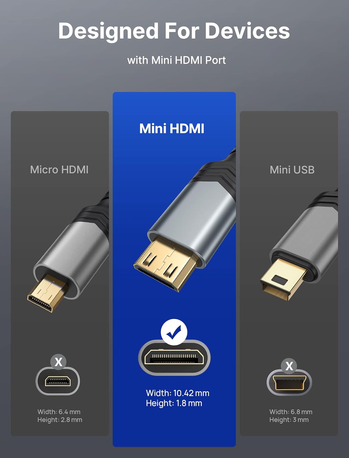 Widely Compatible: Compatible with DSLR Camera/Camcorder/Graphics Video Card/Raspberry Pi Zero/Pi Zero W/Laptop/Tablet/HDTV/Pico Projector/NUC barebones desktop/Sony HDR-XR500/Nikon D3200/Nikon D810 and more devices with mini HDMI port