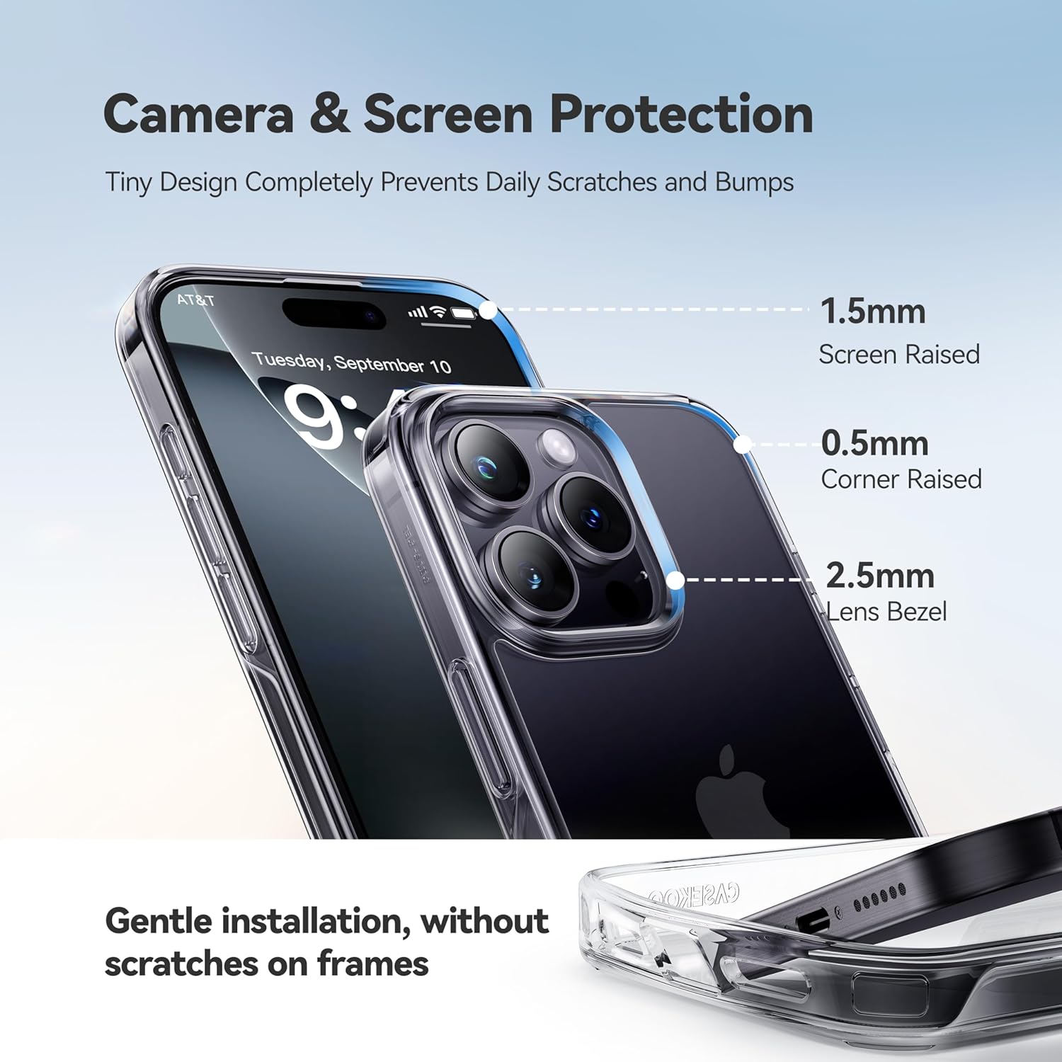 【Raised Camera & Screen Protection】Raised 2.5mm lens edges & 1.5mm screen edges protect your camera and screen against scratches and drops. The tiny design of 0.5 mm raised corner lips on the back keeps the phone optimally stable when lying flat.