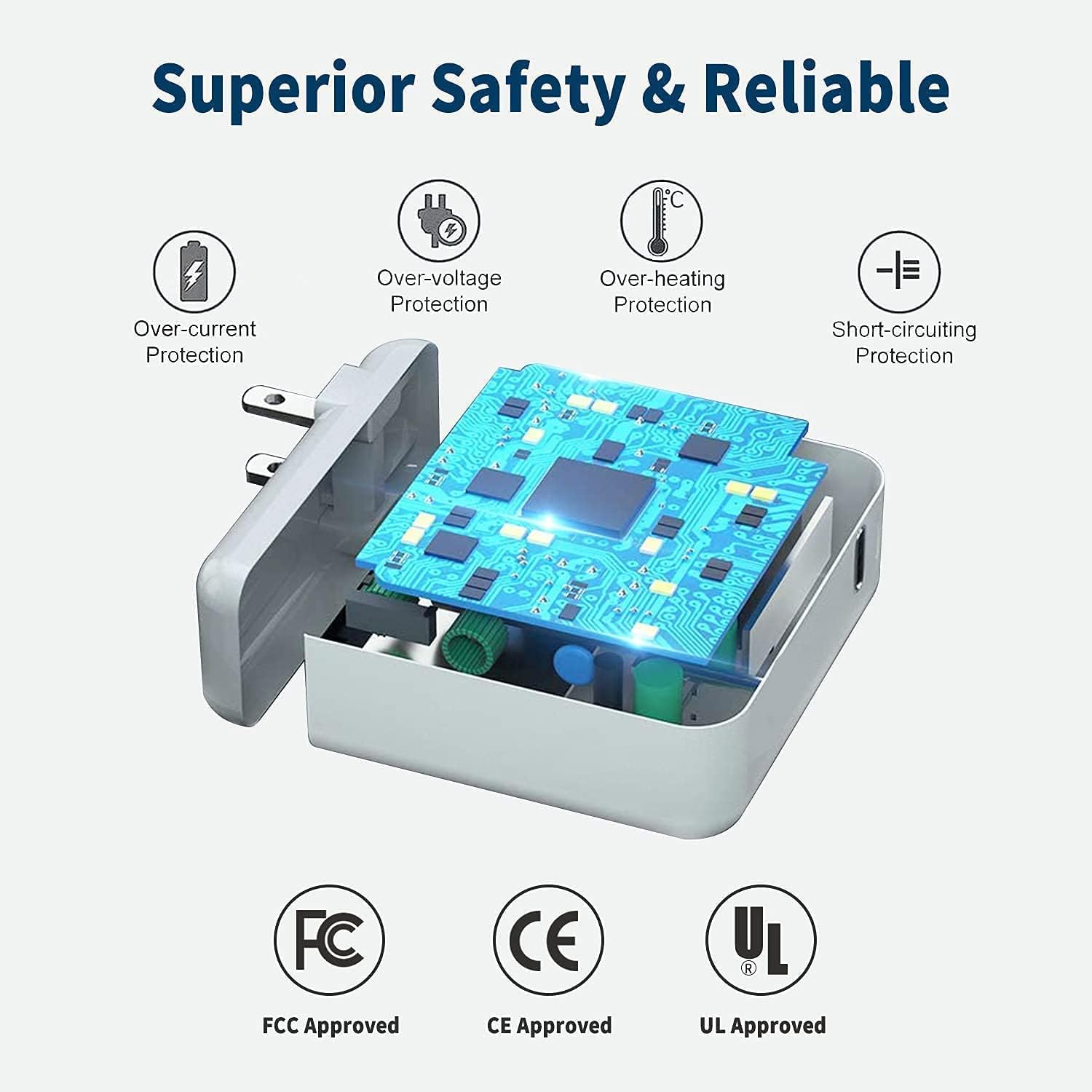 Safer Charging Experience: Built-in IC chip technology provides 24/7 temperature monitoring to ensure safety for you and your connected devices.