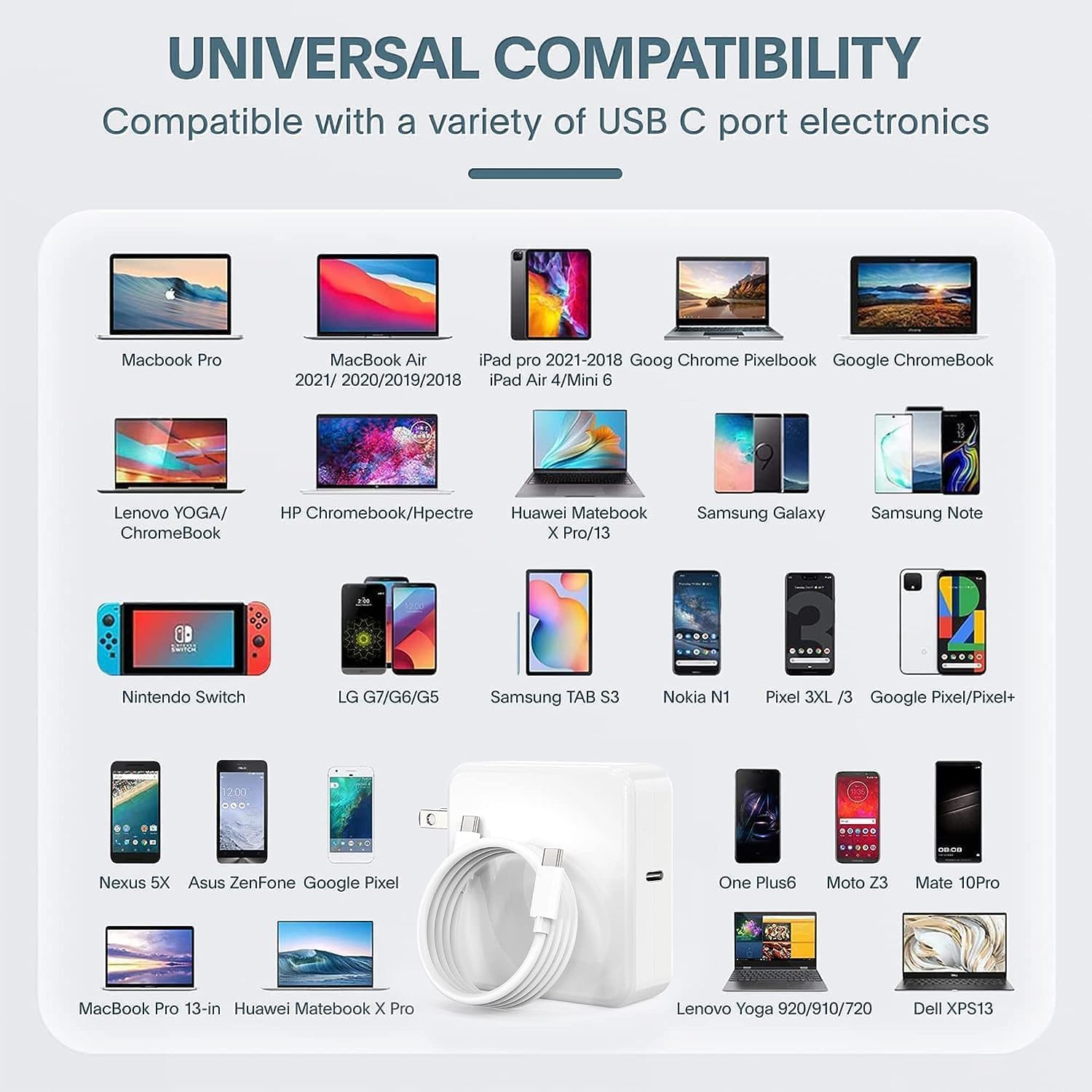 USB C Charger Wide Compatibility: Compatible with PD 20W 25W 29W 30W 61W 67W 70W 87W 96W 100W Model