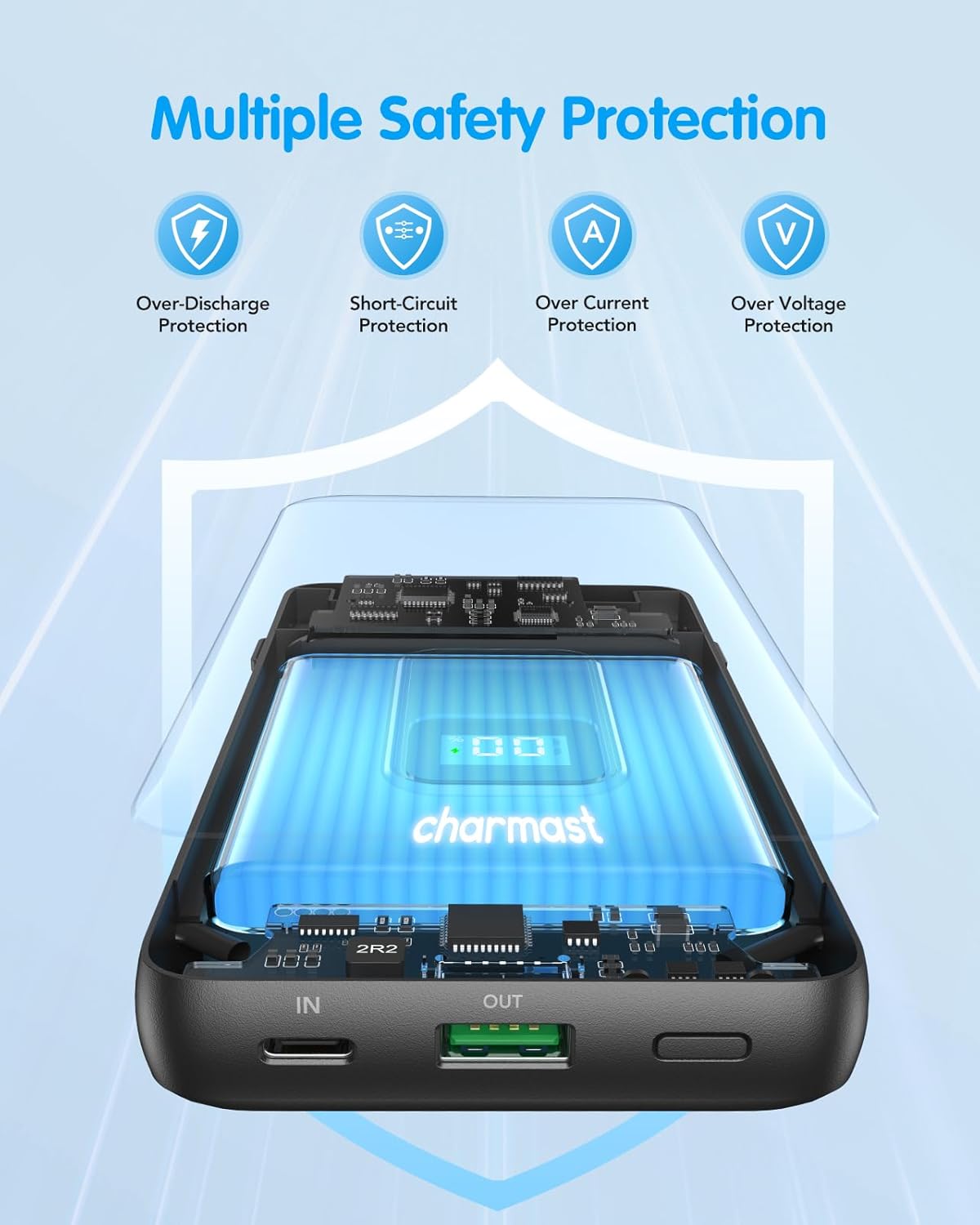 Portable Charger with Built-in Cables and Wall Plug: Two cords and wall plugs integrated allows the Charmast power bank to be compatible with all cellphones, so you don’t need to bring extra chargers or get frustrated with a tangled mess of wires.