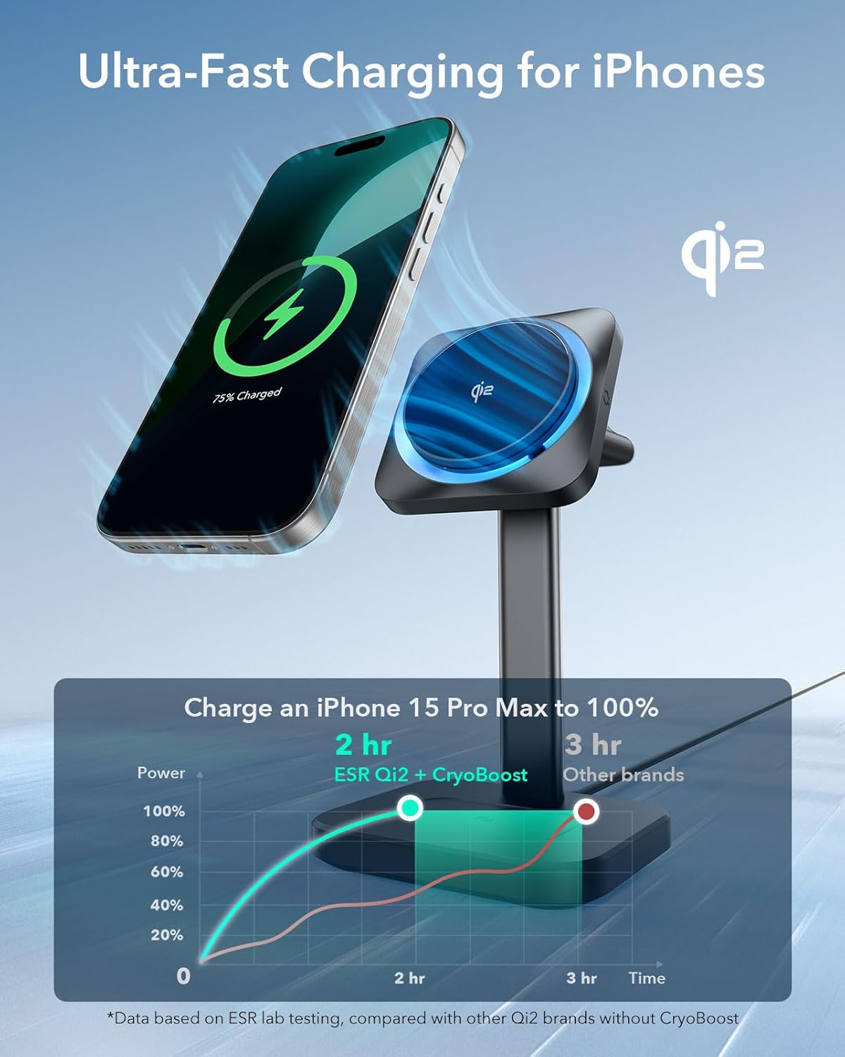 Be the first to review “ESR Qi2 3 in 1 Wireless Charging Station with CryoBoost, [Certified] Phone-Cooling Wireless Charger & 15W Qi2 Charger Stand for iPhone16/15/14/13/12 Series, AirPods 4/3/Pro/Pro 2, Apple Watch, Black”